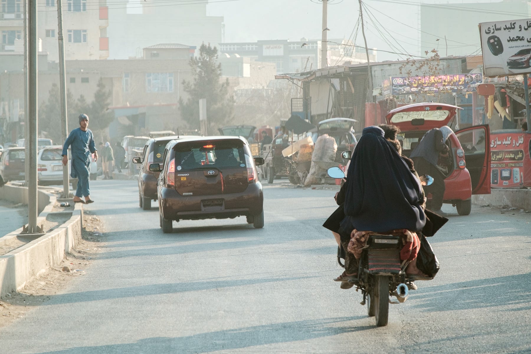 The flip side of the coin is that the police is everywhere. And by everywhere, I mean exactly everywhere. The Taliban have vowed to make Afghanistan safer and more stable. While the results are positive, the means not so much. Weapons are flung across the backs of the thousands of officers who patrol the streets, scanning for danger but also for bad behavior. There is a special type of police, they belong to the Ministry for the Propagation of Virtue and the Prevention of Vice. A head scarf too revealing, taking pictures of living beings, smoking or playing music are all strongly reprimanded. Dressed in a white cotton suit, making them visible from afar in Kabul’s dusty alleys, their sole presence creates stiff and puppet-like citizens. It resembles a bad comedy. The privilege of being a tourist – and hence immune from most of these rules, or at least the consequences if I were to break them – tempted me more than once to flirt with sinful behavior. On one occasion, I followed Xavier into a park, learning later that women weren’t allowed in parks anymore. I then proceeded to take pictures when five locals playing volleyball asked him to join. As I watched the game, I could see from the corner of my eye shadows gathering behind me. I felt several pairs of eyes pierce through my back. When Xavier joined in to take pictures of the highly skilled players, it turned out to be what tipped the scale. After some whispering back and forth behind us – it took some courage to stay exactly where we were, feeling unwelcome – a kind young man came up to us, looking uncomfortable but plowed forward in his request: “It is forbidden to take pictures in the park, would you please stop?”. The way this unfolded would become the common way we interacted with the Taliban in Kabul: through the intermediary of an English-speaking local, ordered to deliver a message to us.