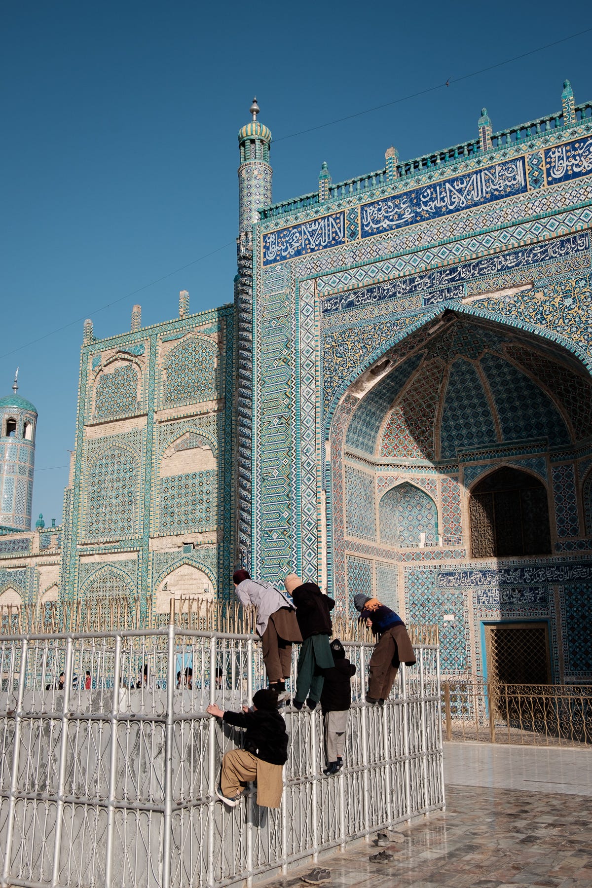 We then went to the sacred place that is the Shrine of Ali in the center square of Mazar-i-Sharif. Here, the right of entry for local women has been revoked by the Taliban. The men manning the entrance gave us a ticket and explained we could walk around but could not enter the shrine itself – that was reserved to Muslims. “And who is she?” asked one of them, pointing at me but looking at Xavier as if I was some mute decorative object. “She’s my wife”, said Xavier. “Very good”. This interaction too, would become customary in our journey throughout Afghanistan. The possibility that I was a human being capable of putting together a sentence to express myself wasn’t one they considered, or liked, for that matter. The fact that we could be a couple without being married neither. I wasn’t sure which one would displease them the most.